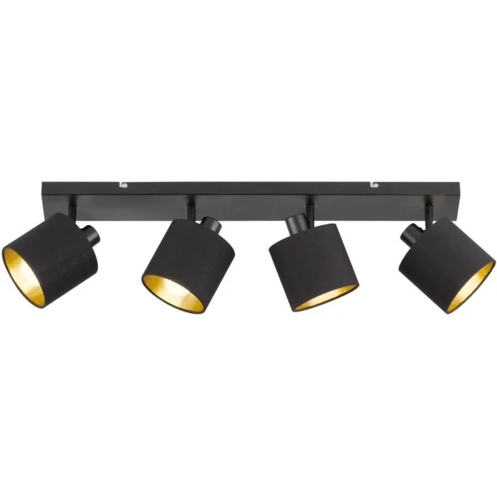 De Tommy is een mat zwarte spot met zwarte kapjes van textiel. De spot heeft een lengte van 70cm en is voorzien van vier E14 fittingen.